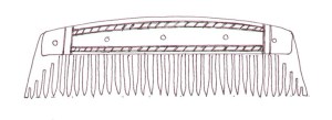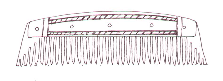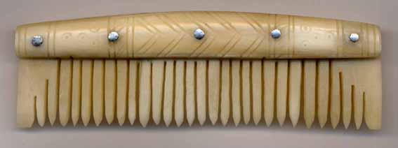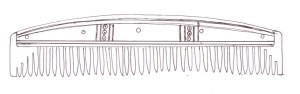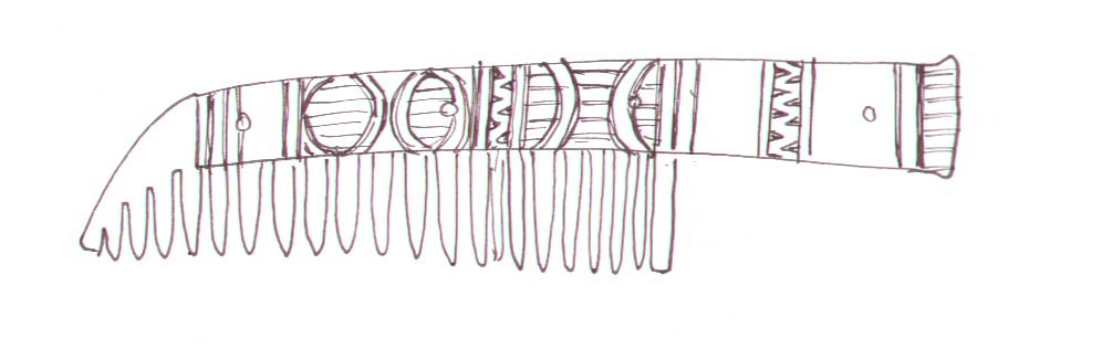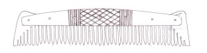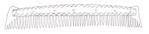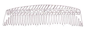 Below are some example of comb types and patterns, and their dates. If you wish to refer to a specific comb, we have provided a unique name code (in brackets after the object) so you we can be certain we are talking about the same object. The first two letters are unique to the site the artefact is copied from, the third letter denote the material you wish us to use A= Antler, and B= Bone, and the final number is unique to that design.