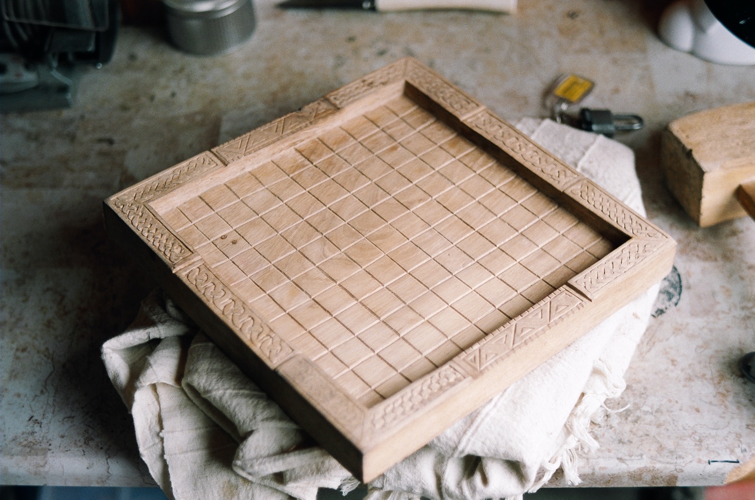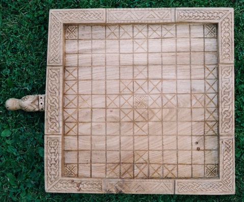 A hnefatafl board, inspired by an original in the National Museum of Ireland.