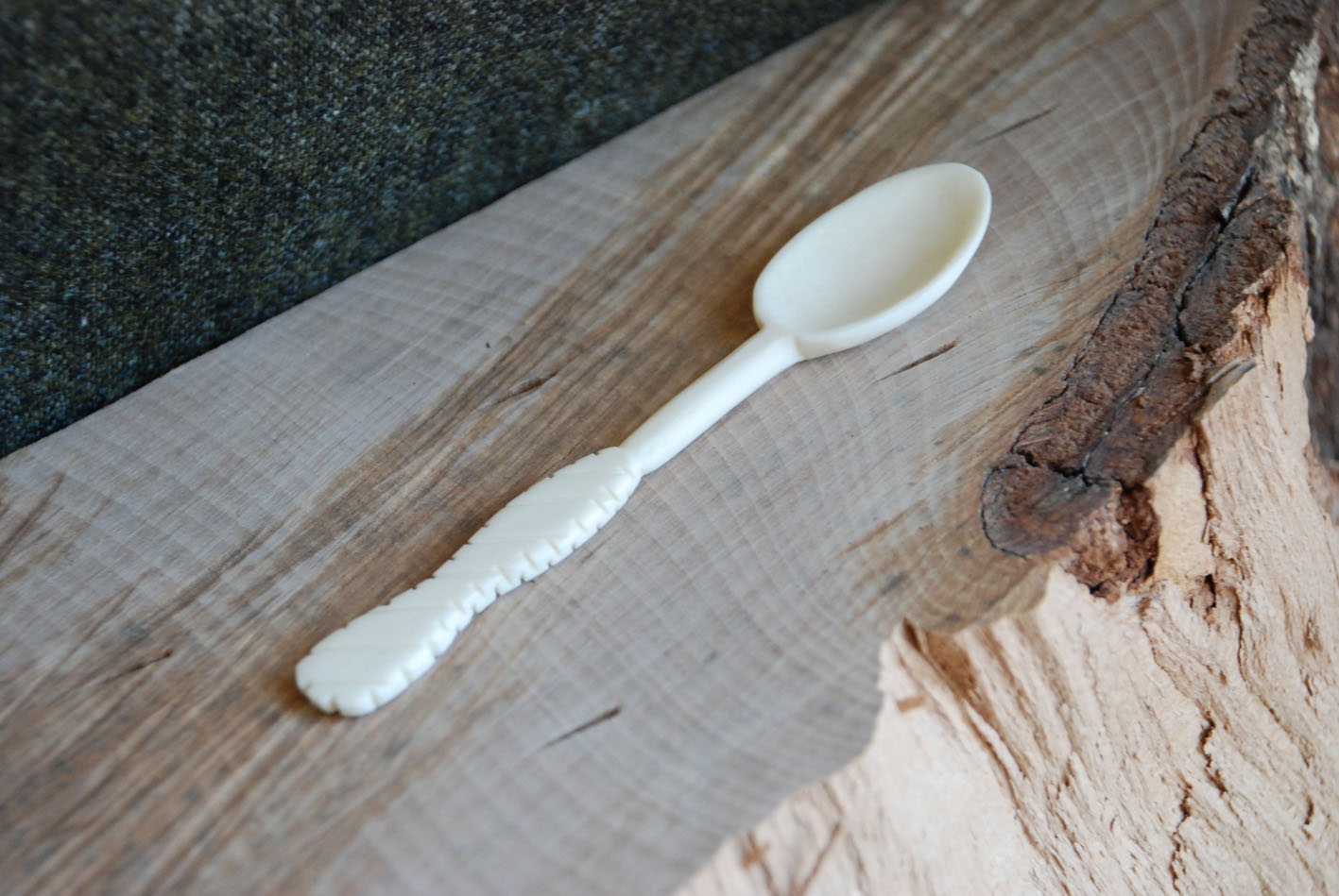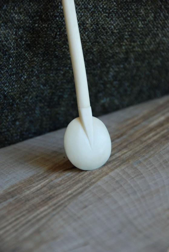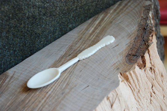 This is a small round bowled spoon, based on an example found in Carlisle during the Millennium Excavations (Howard-Davis C, 2009, p 862). These would be very suitable for eating shellfish, as the base material does not taste subtle flavoured food like a metal spoon would.